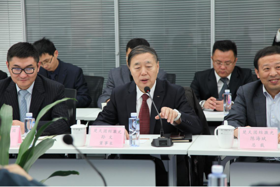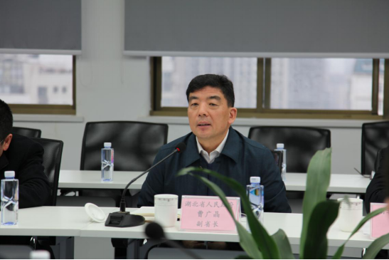 曹廣晶副省長視察指導(左一為楚天團結激光董事長孫文、右一為曹廣晶副省長、右一為楚商資本集團董事長吳軍)